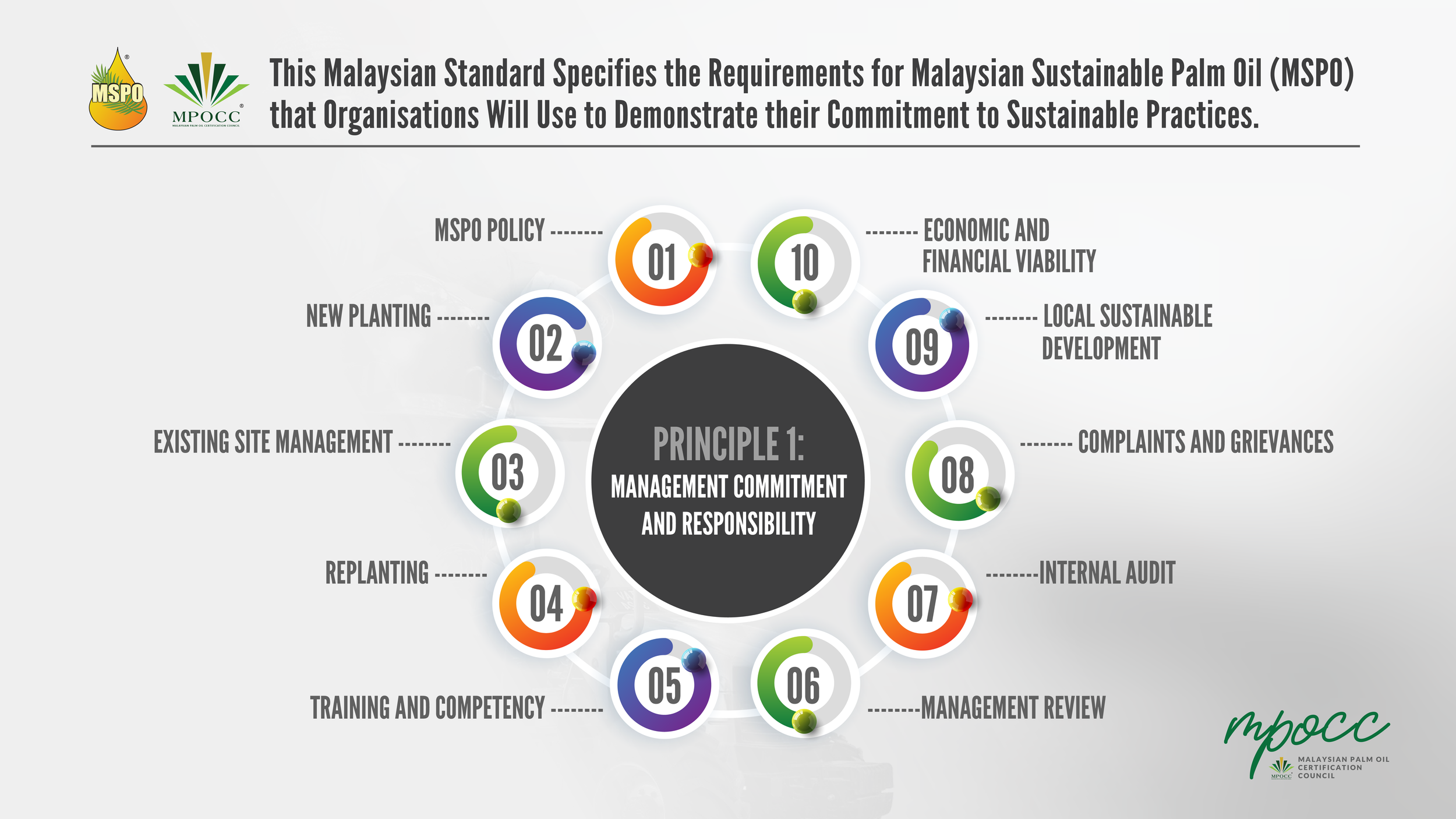 Principle 1 of the MSPO standard has listed 10 criteria to demonstrate management commitment and responsibility.